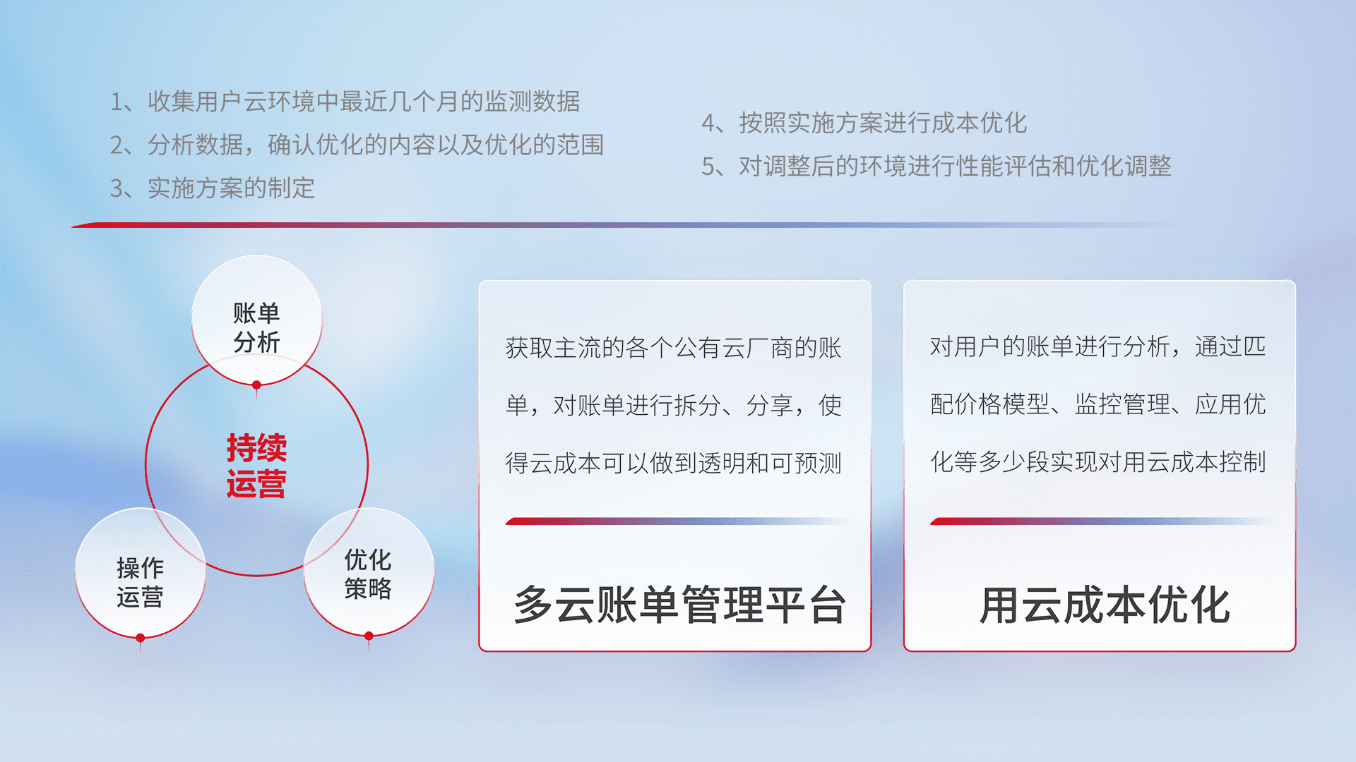 监控业务系统资源开销,,对资源的消耗精确计量,,实现费用的透明化管理,,,不断提升资源使用率,,,,调整资源购买方式,,,降低资源费用成本,,用云成本可预测、、、用云费用可优化,,,云资源配额有据可依。。